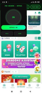 After the 500 deposit is successfully completed, open the Wingo section within the app. When Wingo opens, you will see a bypass panel. Click on the bypass panel and turn it ON.